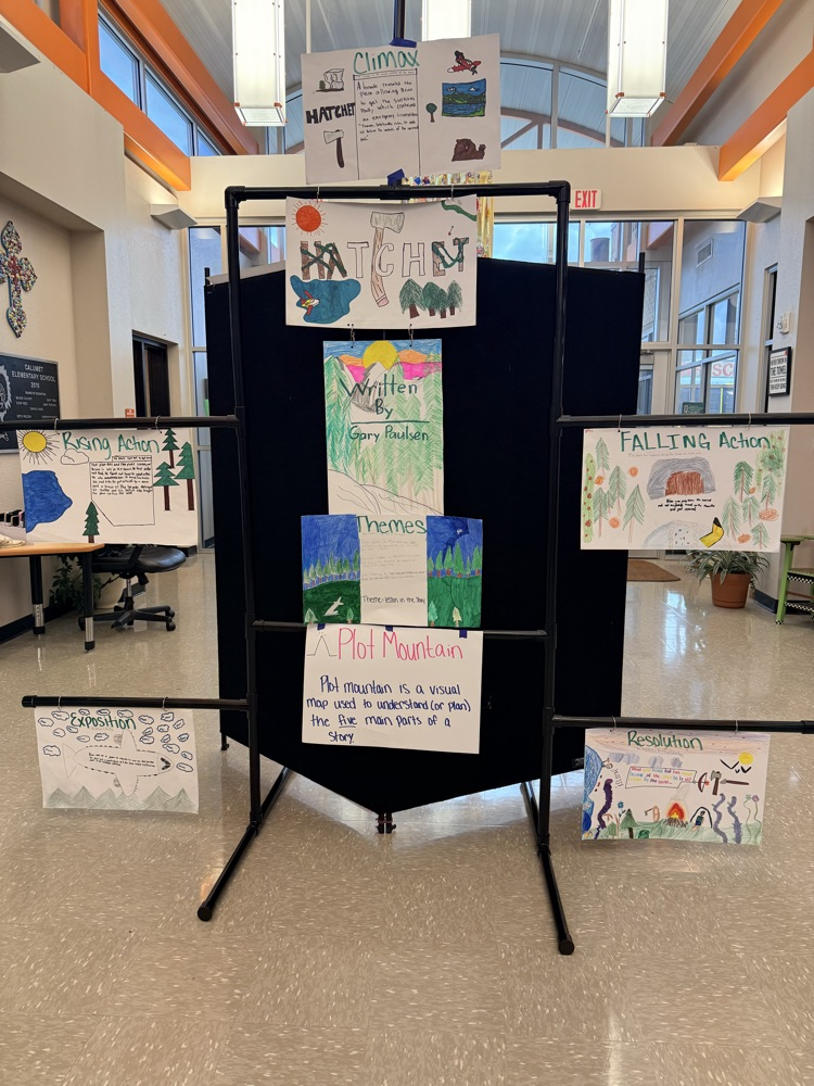 Mrs. Jech's reading group finished reading the novel, "Hatchet" today. While reading, the students worked on a collaborative project to make a giant plot mountain display. It turned out great!